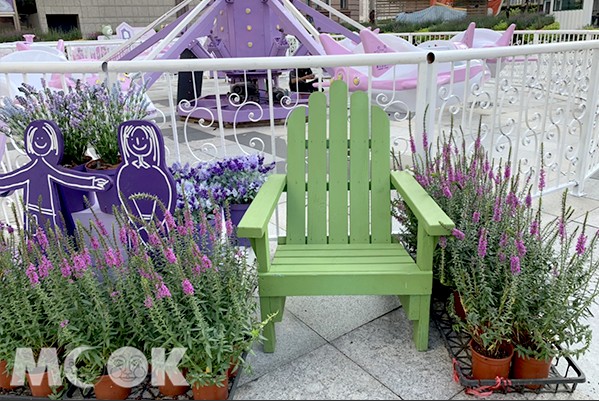 現場還可租借野餐墊(到7樓租借,押金100元),樂園旁的「島嶼森林」是薰衣草森林為期90天的快閃店,販售有薰衣草相關生活用品,每週六下午兩點舉辦仿歐洲中古世紀修道院,燃燒薰衣草可破除厄運,現場消費者可一起祈福,感受來自紫色森林的祝福。