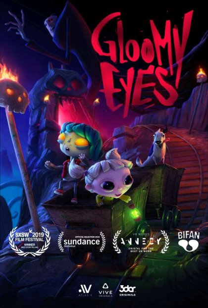在那個太陽隱沒,人類追捕活死人的永夜時代裡,有著一雙大眼睛的活死人男孩咕嚕米,遇見了人類的小女孩妮娜,他們的愛,感動了太陽,純真的愛召喚出改變世界的力量。全世界第一部沉浸式VR動畫《咕嚕米的眼睛》已獲國際影展入圍肯定,包括入選日舞影展、安錫國際動畫影展最高榮譽「VR水晶獎(Cristal for the Best VR Work )」等獎項。咕嚕米的眼睛是6DoF及3D即時運算的三部曲VR動畫電影。由蕭敬騰 (國語),柯林法洛 (英語)配音。