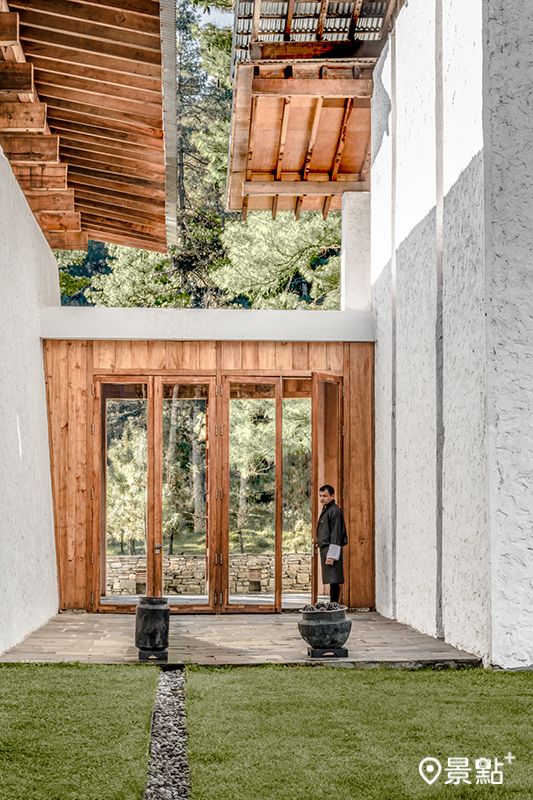 安縵喀拉廷布小屋位於不丹首都所在的廷布山谷,16間套房隱於莫提塘區松柏飄香的森林中。
