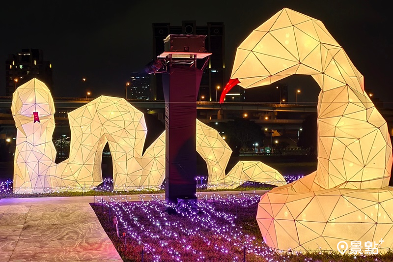 首次在新北燈會中現身的人氣IP LINE FRIENDS家族夥伴Minini,以及農曆蛇年、吉祥福氣等新春意設計日韓蛇年賀歲燈組;另外日本燈組邀請熊本縣等15個縣市地方人文特色花燈參展。