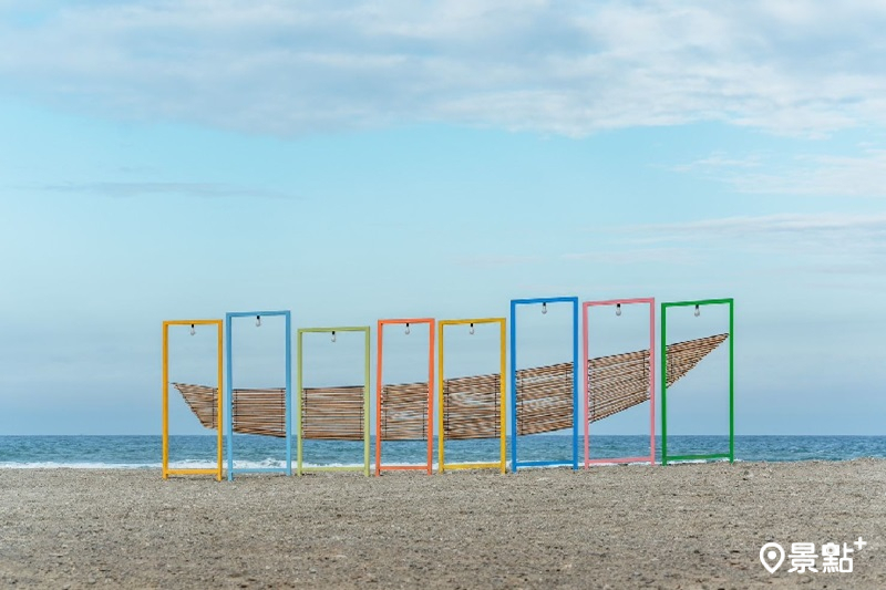 還有隨風擺動的「漂浮的岩層」。還有會動的藝術裝置,由日本藝術家吉井宏創作的「穿越沙灘的風」,這是一部在港區內移動的車,民眾可以關注活動有機會免費搭乘。