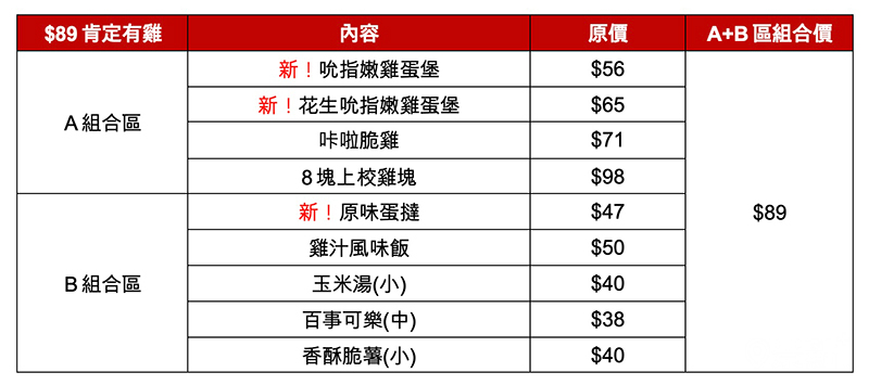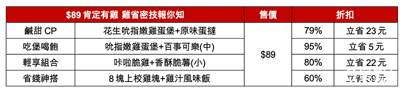 肯德基咔啦脆雞+原味蛋撻89元!20種人氣組合6折起