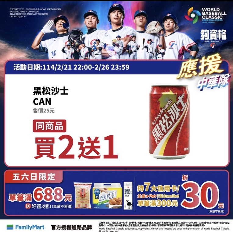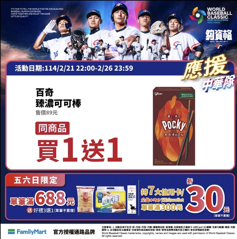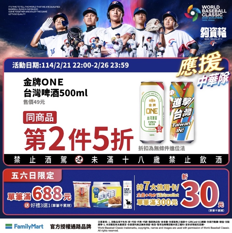 經典賽中華隊首戰敗給西班牙!全家持續應援優惠買一送一買2送1限時推出