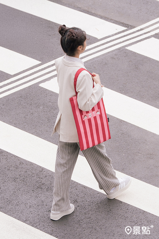 兩款帆布包以條紋圖案與俏皮圖像設計, 特別設計的肩背帶長度,色彩鮮明卻搭配度高,使其既有個性又不會過於浮誇,適合日常使用。