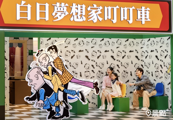 除了主題展覽,新濠影滙也圍繞老夫子元素打造多元特色體驗,一樓鄰近輕軌站入口設有「白日夢想家叮叮車」打卡點,老夫子、大番薯與秦先生的打卡裝置聚首一堂,一定要到這裡跟他門合影留念。