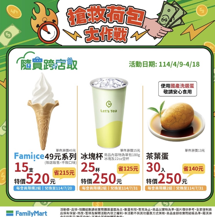 3. Fami!ce霜淇淋49元系列15支,520元(限購2組,兌換至114/07/20)