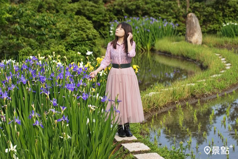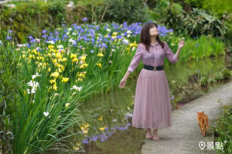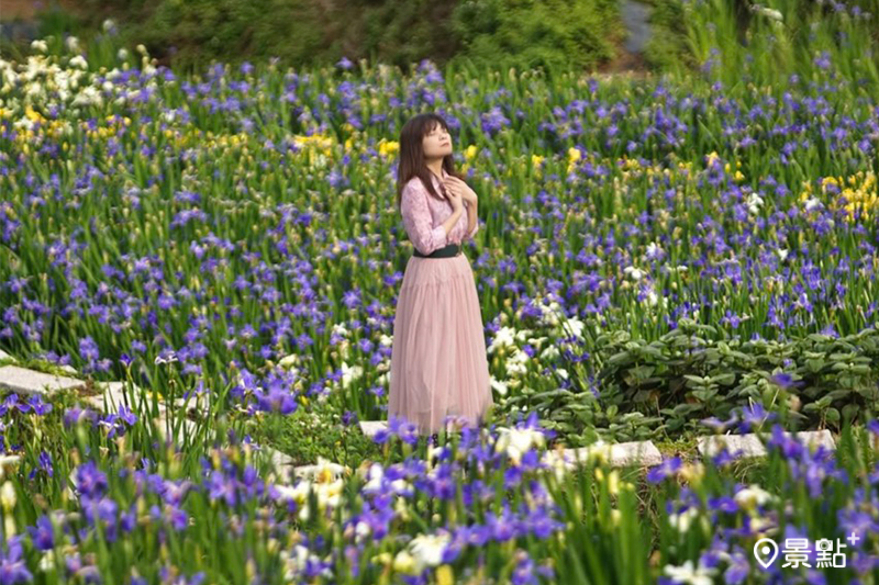 鳶尾花三色花海綻放滿版水岸夢幻景觀!百年石砌梯田春日美拍