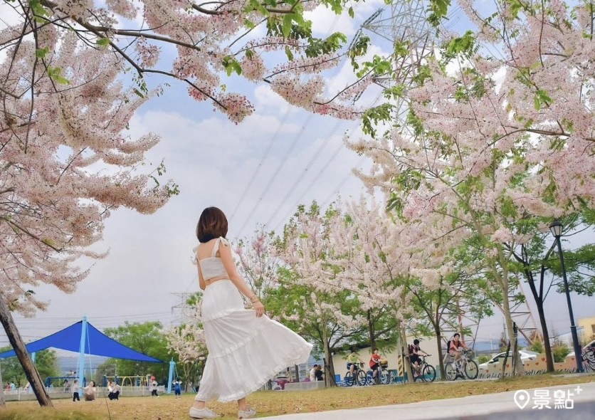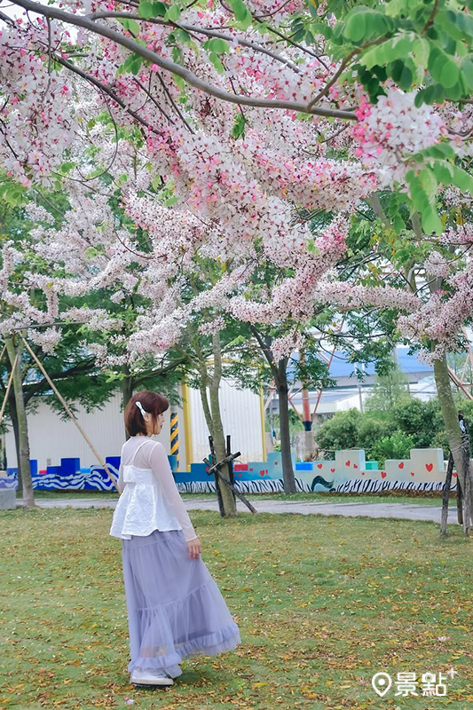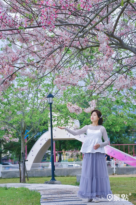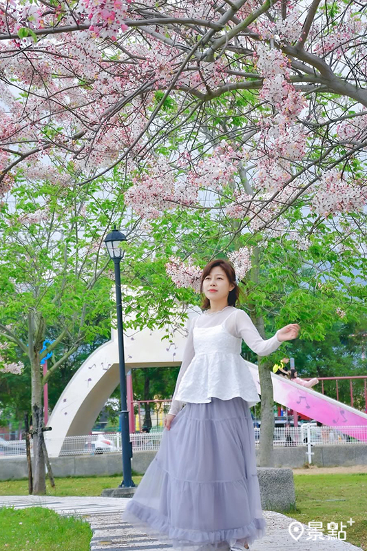 粉紅花旗木音樂樂園繽紛盛開!春日賞花順遊超夯親子公園