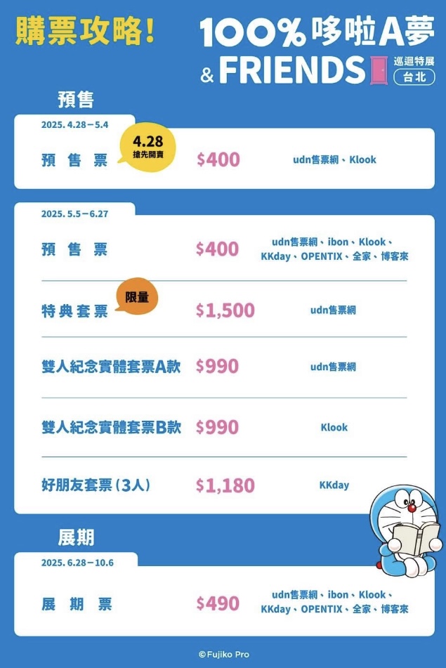 預售票開賣日:4月28日 udn售票網、Klook平台販售,5月5日全面販售