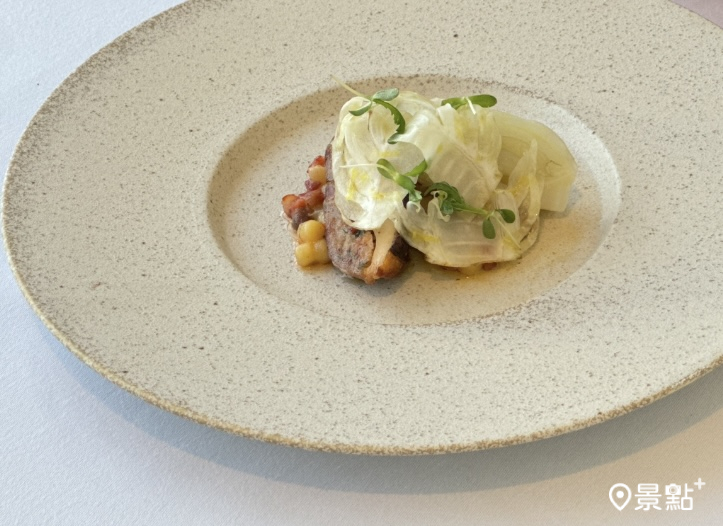 溏心鮑魚/茴香根/西班牙臘腸珍珠麵則為令人愉悅的澱粉類選項,珍珠麵源自義大利長壽之島薩丁尼亞,以海鮮高湯煮過再與西班牙臘腸拌炒,搭配鑲著雞肉慕斯的溏心鮑魚燉煮、沙拉兩種作法的茴香根品嚐,鮑魚柔嫩鮮美、珍珠麵彈牙鹹香,味蕾至此已全然甦醒預備迎接主餐登場。主餐除了Josh大力推薦、適合4人分享的佛羅倫斯風味丁骨牛排,尚有適合單人品嚐的菲力、肋眼或紐約克可彈性選擇。