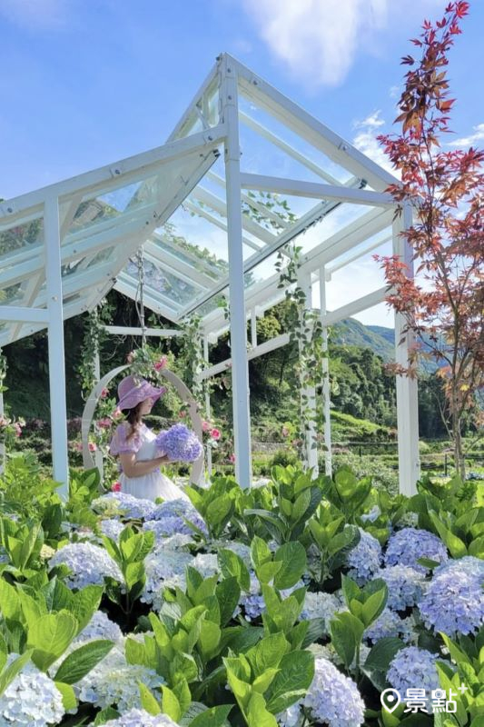 花谷海芋園除了長年培育海芋之外,繡球花也是每年必拍花景,往年園內設有黑色復古電話亭造景,還有經典大浴缸可以拍出有趣畫面。