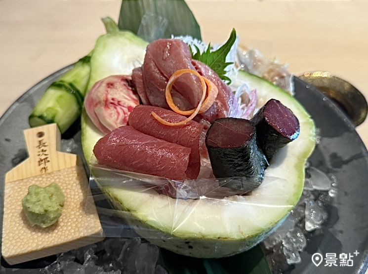 而在處理鮪魚魚頭時,也延續日式的傳統處理方式,大魚頭用炙烤的方式烤到魚皮外表酥脆,料理長也熟練地刮取魚頭魚肉,讓鮪魚的吃法增添不同的味覺體驗!