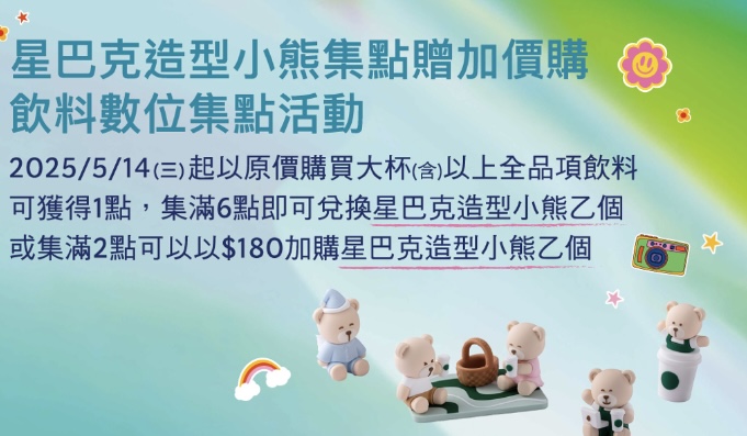 星巴克造型小熊集點贈加價購|飲料數位集點活動