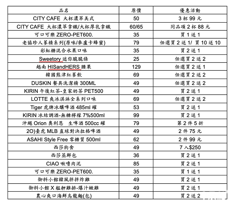 1. CITY PRIMA大杯精品美式(冰/熱)買7送7,限量5萬組。