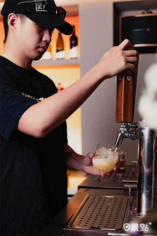 Tee Time供應全球各式經典烈酒、紅白葡萄酒與生啤之外,也引進潮流酒吧風格的DRAFT & TAP 汲飲式雞尾酒系統,提供三款專屬風味汲飲雞尾酒,與一款每日限量供應的現調Hinoki G&T木質調琴酒,完美結合高爾夫球場上的輕鬆氛圍與都會社交風尚。