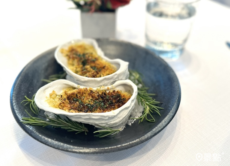 起源於美國紐奧良的經典生蠔料理,因其醬料濃郁、滋味奢華,讓人聯想到當時全美最富有的洛克菲勒家族而得名。廚師團隊將進口生蠔以台灣的東石鮮蚵取代,搭配特製香料奶油與自製香草麵包粉焗烤,蚵肉鮮美、飽滿脆滑,奶油與麵包粉噴香卻不搶蚵味鮮爽,「烤洛克菲勒鮮蠔」充分展現台灣海鮮的豐饒滋味。