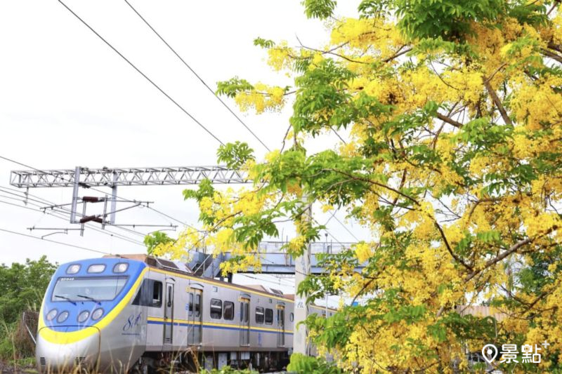 近期屏東有兩處爆發的阿勃勒花海景點,第一處是位於人氣「阿秀小吃部牛肉麵」對面的「六塊厝車站」,這裡不僅能將花海及火車一同入鏡,壯觀且垂落的金黃花海,更讓人輕鬆拍出滿版花景環繞美照。