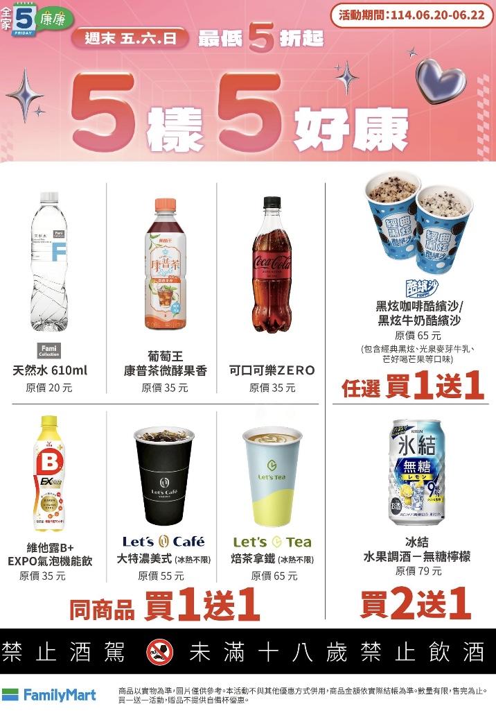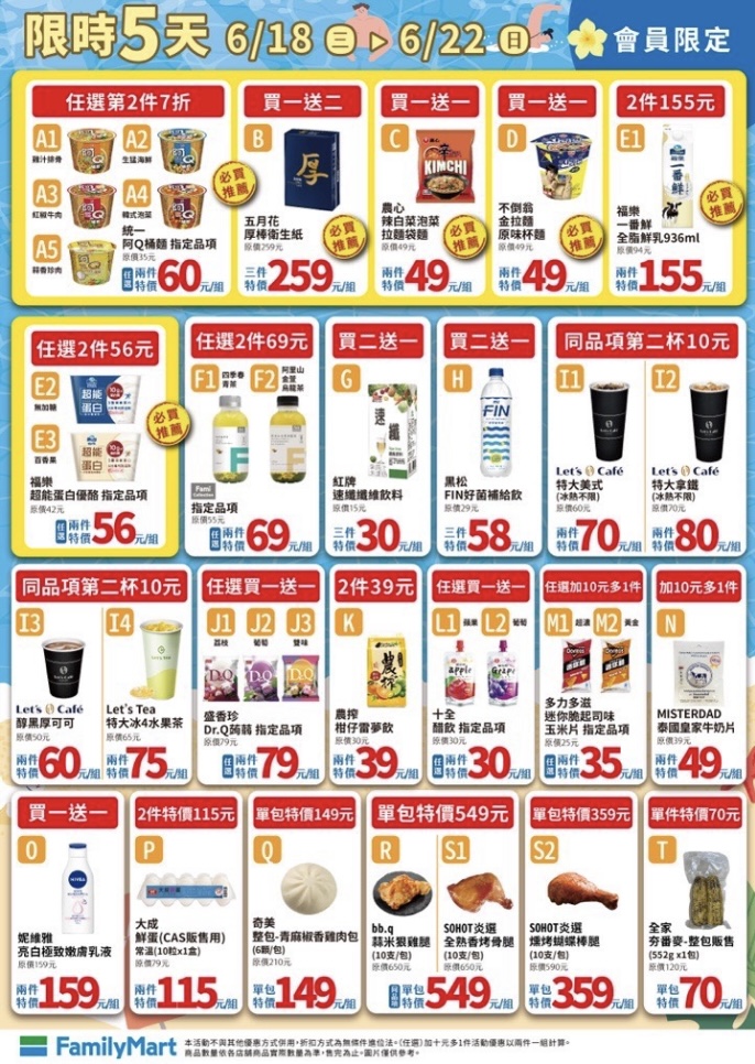 週末優惠到趕緊追起來!週三起跑的會員優惠有大杯美式、特大拿鐵、醇黑厚可可第2件10元!不倒翁金拉麵泡麵買一送一(BTS JIN杯身),五月花厚棒衛生紙買一送二(單串均價87元)週五起跑的康康5有冰淇淋、大杯特濃美式、焙茶拿鐵等買一送一的優惠,週末假日不妨把這些優惠追起來!