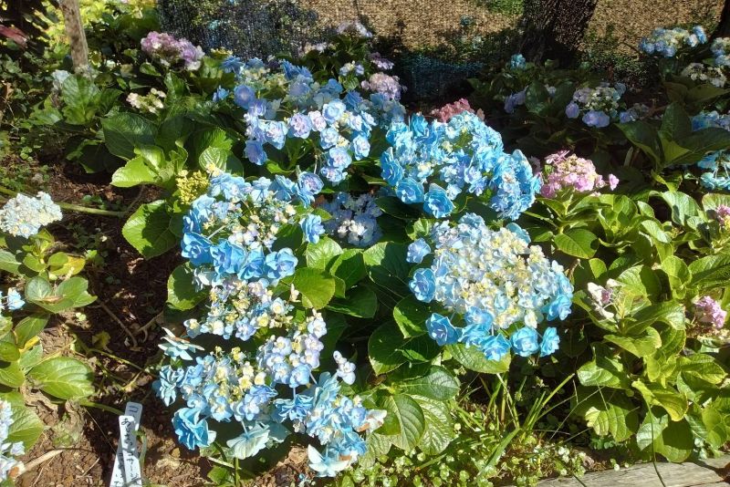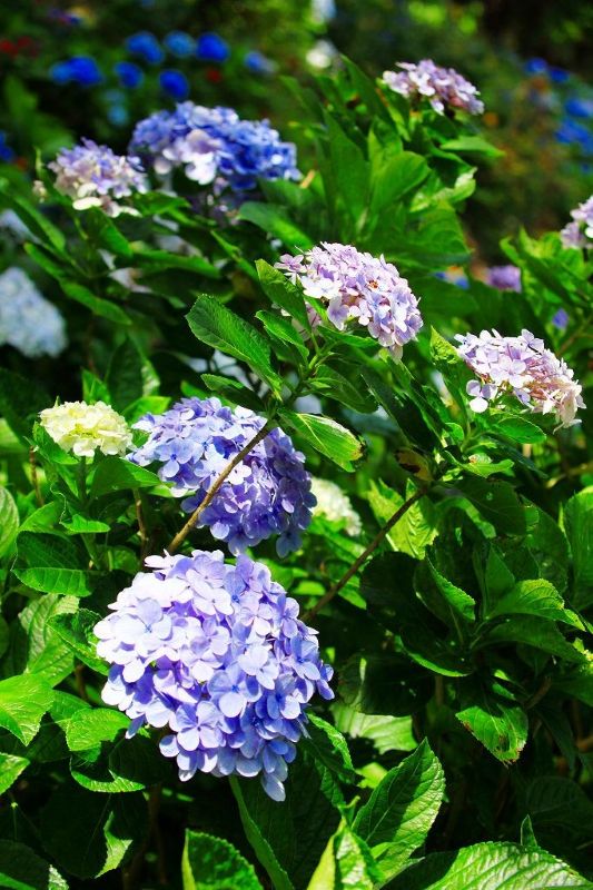 取景時可漫步於花園階梯,隨機抓拍自然氛圍感畫面;或是蹲坐在花叢中,捕捉滿版花海包圍場景;也可以運用斜坡地形,由低處向高處拍攝壯觀的盛開花海;接著可配合光影變化,取景巨型繡球花特寫;最後別忘了將花海及園內木屋建築一同入鏡,捕捉日式氛圍美照。