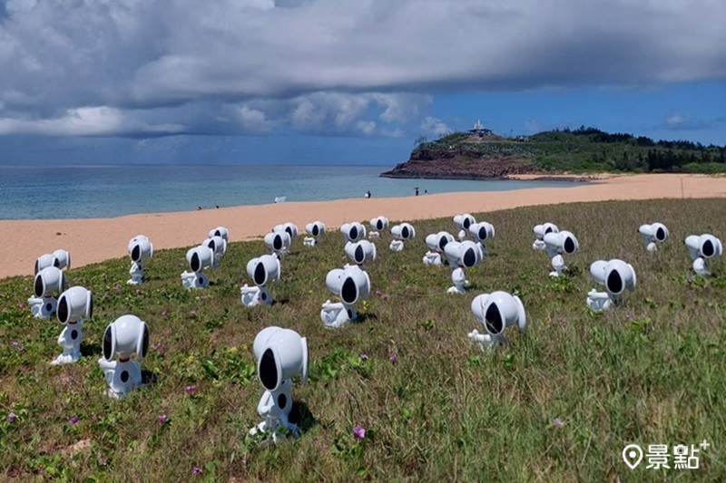 30座SNOOPY公仔快閃大菓葉柱狀玄武岩!合體4公尺高史努比氣球裝置藝術轉戰新地點