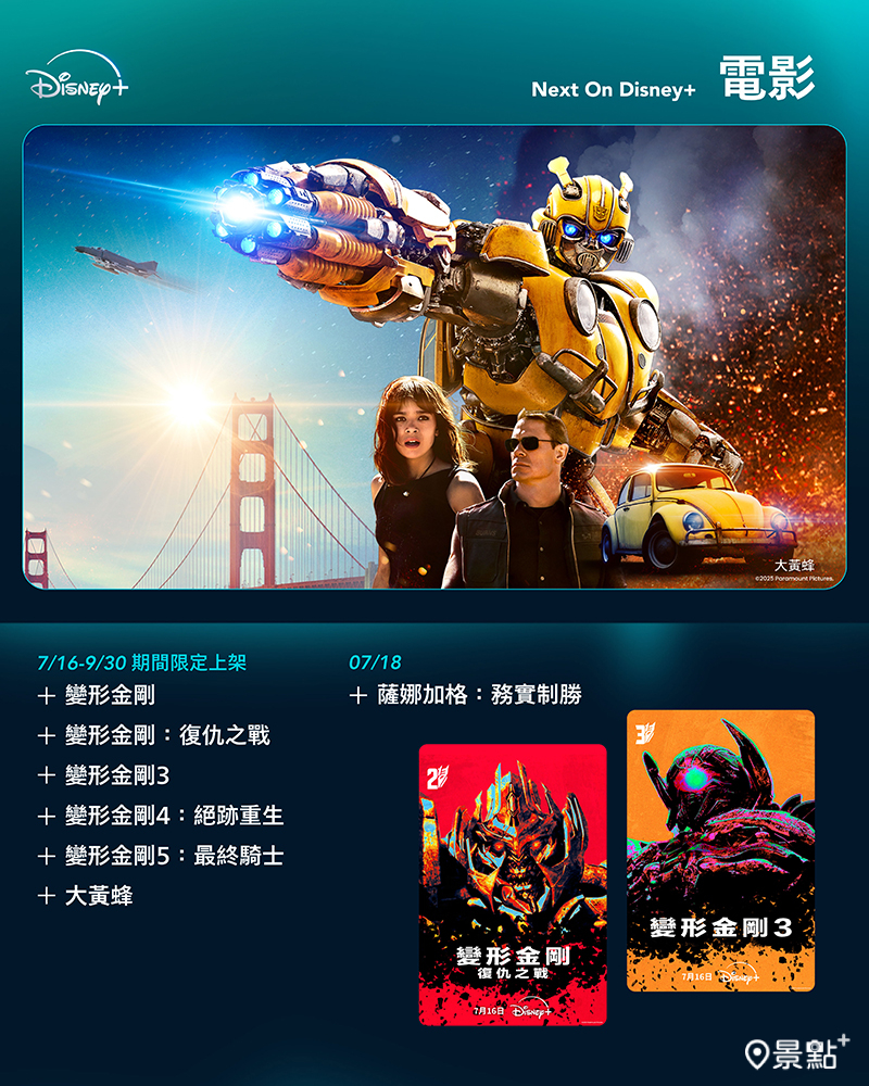 這次將一次上線《變形金鋼》、《變形金剛:復仇之戰》、《變形金剛3》、《變形金剛4:絕跡重生》、《變形金剛5:最終騎士》、《大黃蜂》,橫跨真人與動畫、前傳與續集,帶領觀眾進入龐大的機器人宇宙。
