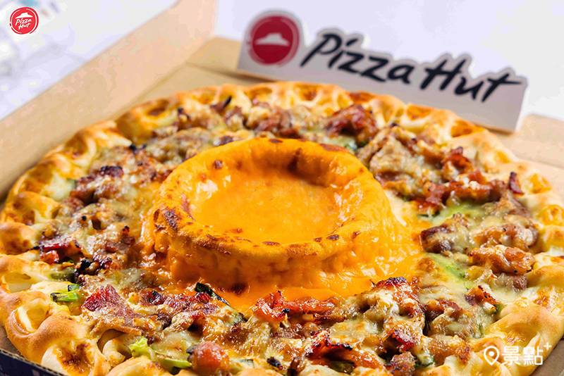 加價199元還能升級討論度極高的「火山熔岩餅皮」,不只餅皮外圈滿滿爆漿熔岩芝心起司,中心還有超香濃的火山起司醬,包含切達起司、帕瑪森起司、帕達諾起司與康門貝爾起司,搭配「韓風醬烤雪花牛比薩」沾著吃,更濃香厚實、層次豐富,絕對是無法抗拒的宇宙級美味!