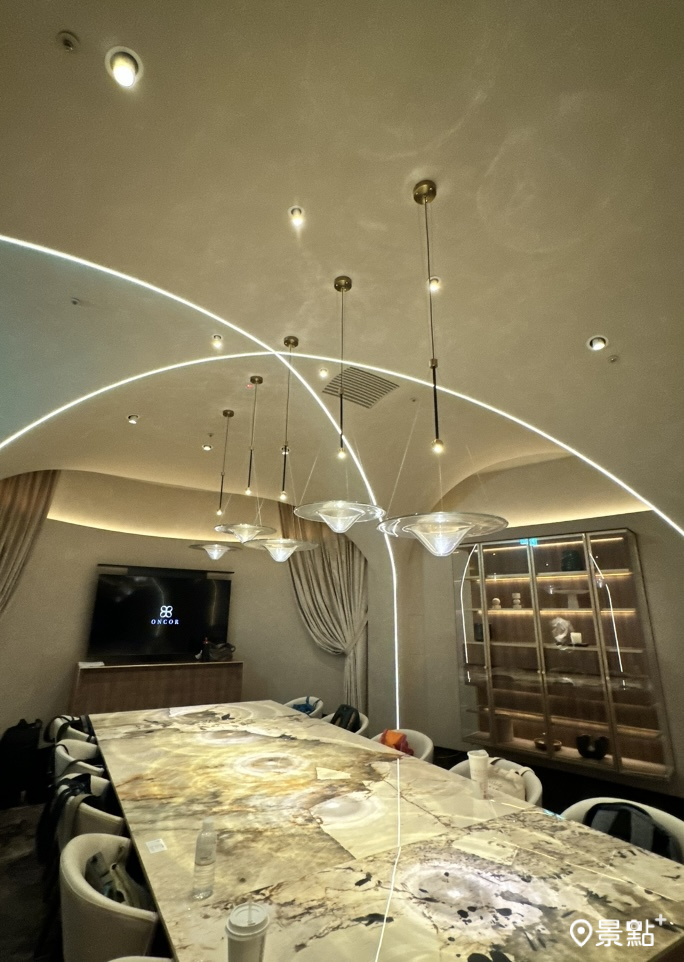 空間營造上從迎賓大廳到各式歡唱空間,裝潢設計大量運用大理石、金屬與特殊塗料等高質感材質,營造出美術館般的沉浸式劇場氛圍。