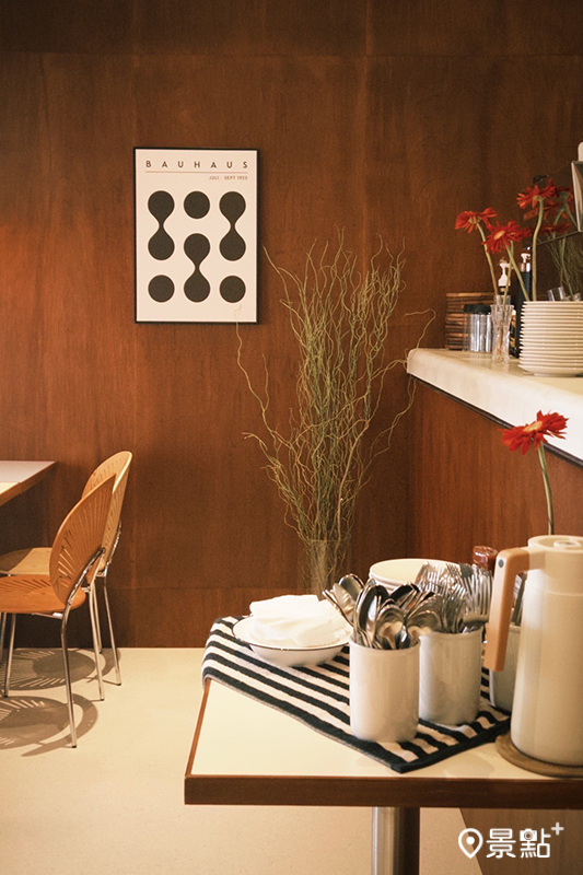 LOST and Found 西門店延續品牌風格,融入北歐世紀中期現代主義設計的語彙,木質營造溫度,搭配設計傢俱與風格軟裝擺飾、大面玻璃創造陽光灑落的慢節奏日常,讓人在城市裡也能找到一種理想生活的沈浸感。開放式吧台配置,讓顧客自在久坐、慢慢生活。