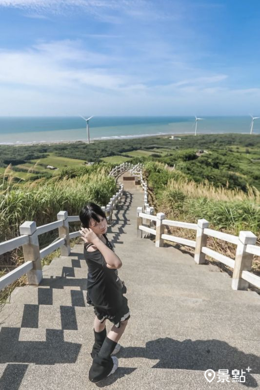 距離通霄海水浴場車程約15分鐘,可到達熱門景點「後龍好望角風景區」,這裡不僅能拍攝幾合構圖風車美景,還能取景延伸感海景步道,接著從後龍好望角風景區開車約20分鐘,可到達濱刺麥花海景點「合歡石滬」,推薦規劃一日遊。