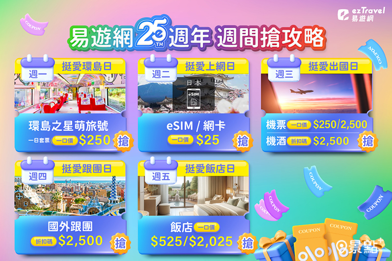 易遊網25週年慶日韓機票250元!全站優惠25折起加碼飯店住宿券抵用金