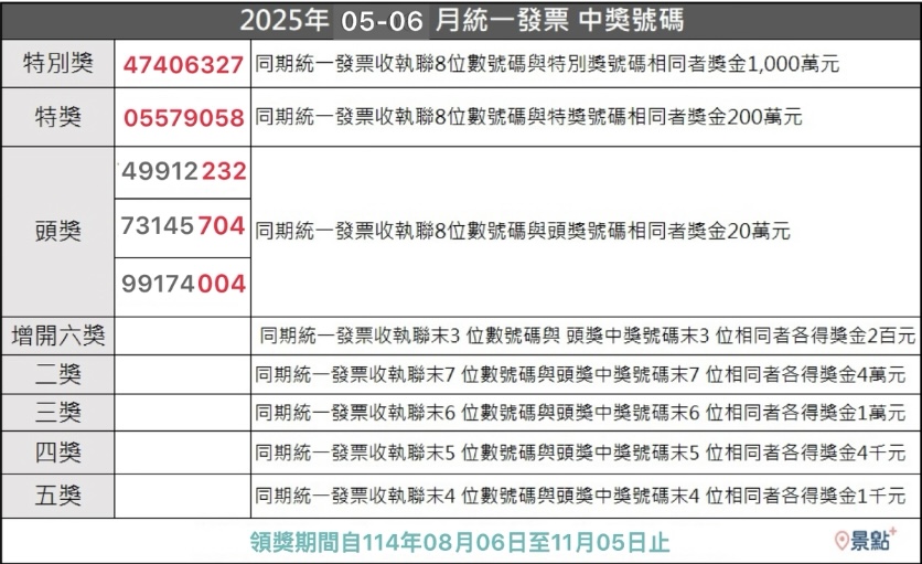 花20元買飲料中千萬!發票對起來!2025年5 - 6月統一發票中獎號碼