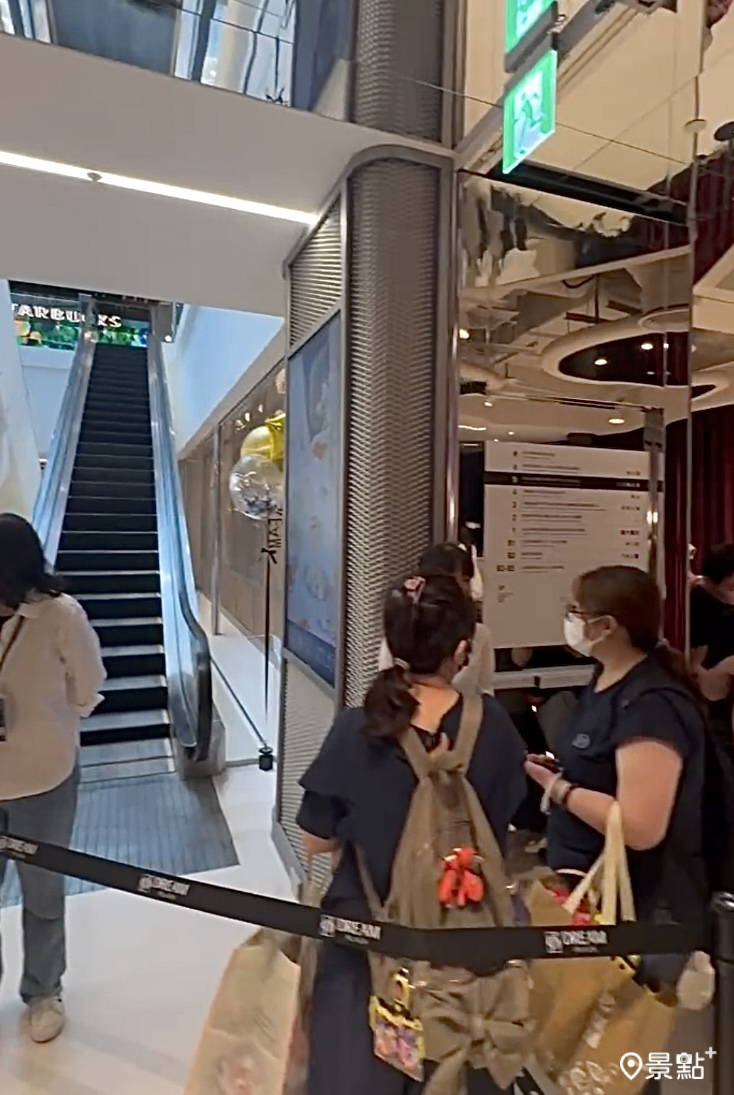 有抽取到號碼牌的人會在5樓手扶梯旁等候、排隊,大約30分左右就可進場( 等候時間仍要看當天人潮消化速度 ),而等候區這邊也是有圍起禁止通行的區隔帶,唯有確認抽到號碼牌的人才可進入這個等候區。