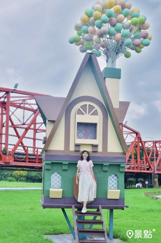 雲林蝴蝶公園天外奇蹟氣球小屋同框西螺大橋、草原場景,宛如童話世界般夢幻。(圖/a_zhu_zhu_)