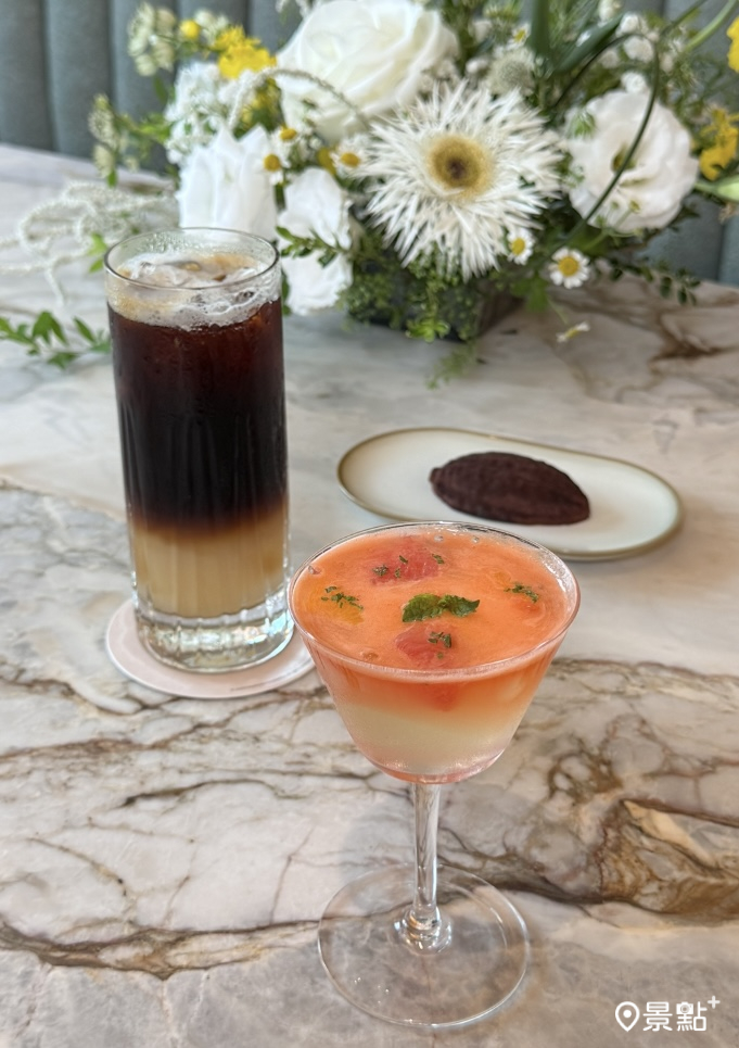 甜點推薦靈感來自東方經典甜品「香橙蜜桃冰粉凍」,一抹粉色泡沫,輕輕覆蓋在晶透涼粉上,入口綿滑如雲。下層的涼粉佐以新鮮香橙,清甜果香伴隨著淡淡柑橘酸意,層層交織出夏日特有的節奏。以細膩手法轉化為一款清爽輕盈的現代甜點。