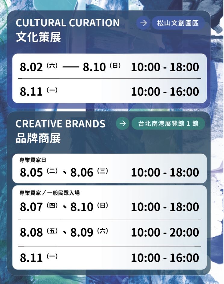 8月5日(二)、6日(三) 10:00-18:00