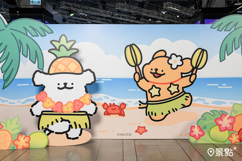 「Maltese線條小狗夏日狂歡趣」今年展場全新升級,規劃4大主題拍照點,讓充滿度假氣息的線條小狗,以最療癒的舞姿熱情迎接粉絲,秒飛夏威夷海灘!