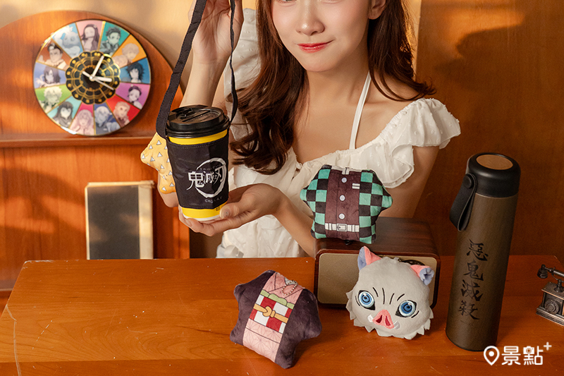 「雙層收納盒」提供三款角色主題,讓各種小物收得整齊;「造型杯套」則有四款角色設計,從禰豆子到炭治郎,各有特色。