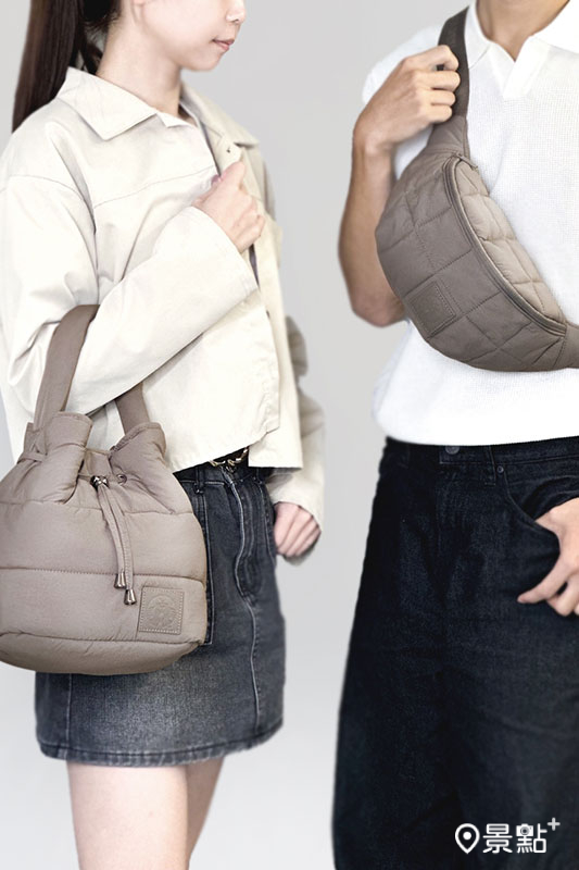 以具有質感、柔軟舒適的尼龍面料推出一系列包款,包含「灰棕尼龍絎縫側背包」、「灰棕尼龍絎縫筒型側背包」、「灰棕尼龍絎縫斜背包」和「灰棕尼龍絎縫圓筒側背包」,多款尺寸及實用袋型,以簡約俐落的絎縫設計搭配經典女神Logo,不論正裝或是休閒打扮都能為日常造型帶來個性時尚感,完美迎接初秋時節。