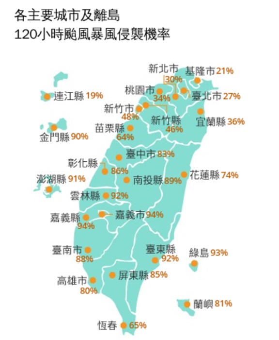 由於楊柳的路徑稍稍南偏,導致於對東南部、西南部、中部的影響更為明顯,中央氣象署公布最新120小時內暴風侵襲機率,建議民眾提早作防颱準備。颱風預計會登陸,跟其他颱風不同的是,楊柳颱風登陸後雖不會引進西南氣流,但其本身帶來的雨量不容小覷。