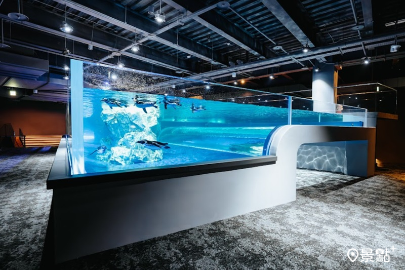 2F-企鵝區:國內首見的企鵝開放式展示缸,讓遊客用各種方式與企鵝共處。可以站在觀景平台近距離觀察麥哲倫企鵝互動行為;也可以坐在看台區感受企鵝共處時光;更可以步入水槽下,用仰望視角靜靜躺著感受與企鵝相遇的療癒片刻。