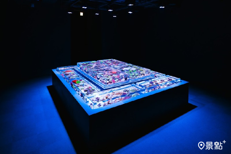 2F-璀璨珊瑚:共展示約40種形態迥異、斑斕艷麗的珊瑚,透過全台首創開放式立體展示,將璀璨絢爛的珊瑚收納於其中,讓人彷彿打開珠寶盒般仔細觀察大自然的奧妙之美。