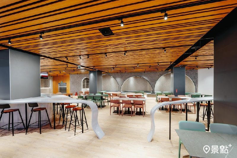 台中海洋館設有一間主題餐廳與兩間咖啡吧:濕地區旁的主題餐廳,伴隨夕陽餘暉透入潮汐撒下的光影,絕美景致讓這段旅程更增添回憶;而位於5樓的景觀咖啡廳,則擁有極佳遠景,可瞭望廣闊的台灣海峽與遠處的高美濕地。黑潮之海展區旁的咖啡飲品吧,則可用近距離的沉浸視角感受黑潮之海的壯闊。台中海洋館於試營運期間也推出館內的1樓咖啡飲品吧及5樓景觀咖啡廳相同飲品第二杯半價優惠。