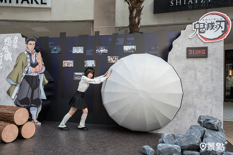 「岩柱的力之試煉」展現岩柱的堅毅精神,將手搭上趣味滾石裝置,還能測試自己的力量值。