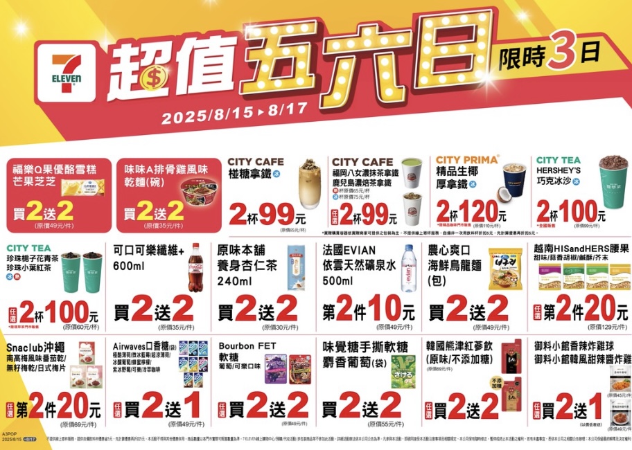 週末就要享超值價,7-11週五起推出的超值五六日,從咖啡、茶飲到泡麵、零食都有折扣優惠,還有「OPENPOINT行動隨時取-超級好運拜中元188」,多組咖啡茶飲有188元的優惠組合價,另有針對準備開學的族群所推出的 7-ELEVEN i預購「BTS開學神助攻」,8/17、8/27更有限時【iPhone 16全系列贈3%】OP點數的回饋,優惠趕快追起來!