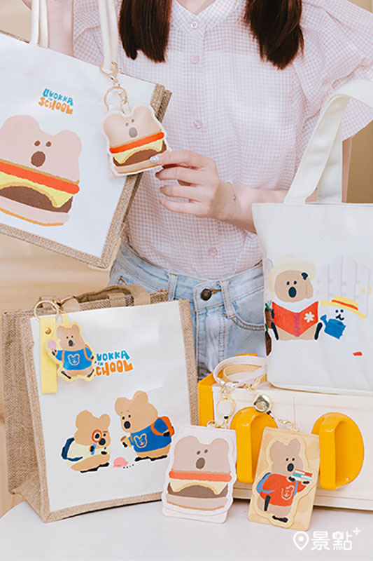 全系列實用又可愛的辦公文具如「雙模無線滑鼠」、「雙模無線數字鍵盤」、「復古造型計算機」、「桌上收納鐵櫃附鏡」等,讓學習與工作都不再枯燥。同時還有「漢堡造型木頭杯墊」、「造型票卡夾」、「陶瓷碗」、「搖擺掛鐘」、「絨毛玩偶」、「DINOTAENG公仔」與「漢堡圍裙」等居家生活小物,將角色療癒魅力延伸至每一個生活角落,隨時充滿歡樂氣氛。