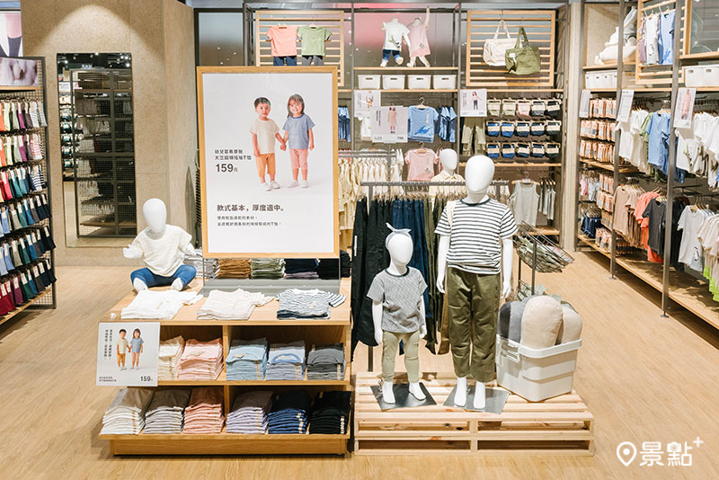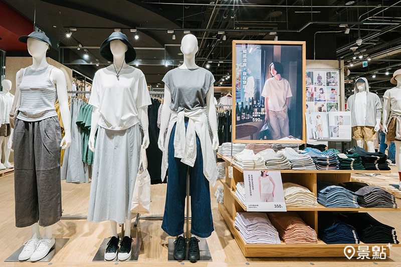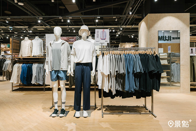 MUJI無印良品愛買台中門市不僅提供多元商品選擇,更打造具生活感的場景陳列,透過家具擺設與人型模特兒穿搭,呈現客廳、臥室、書房等空間氛圍,讓顧客在選購時更能想像商品的使用情境,提升購物體驗。