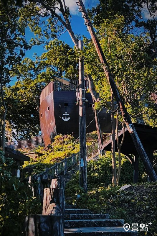 取景時除了在平台上捕捉滿版台北市美景,還可以在森林方舟下方,拍攝船頭、藍天白雲及綠林環繞的同框畫面,拍出宛如電影般壯觀又神祕的場景。