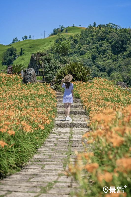 其中一處制高點「鹿蔥亭」可一覽金針花海遍布山頭的美景;「克難亭」為金針花旁的荒廢涼亭,高度適合讓人坐在亭邊,捕捉以花海為背景的美照;「臥睡的小女孩」則可拍出層次花海,還能將縱谷山景一同入鏡。