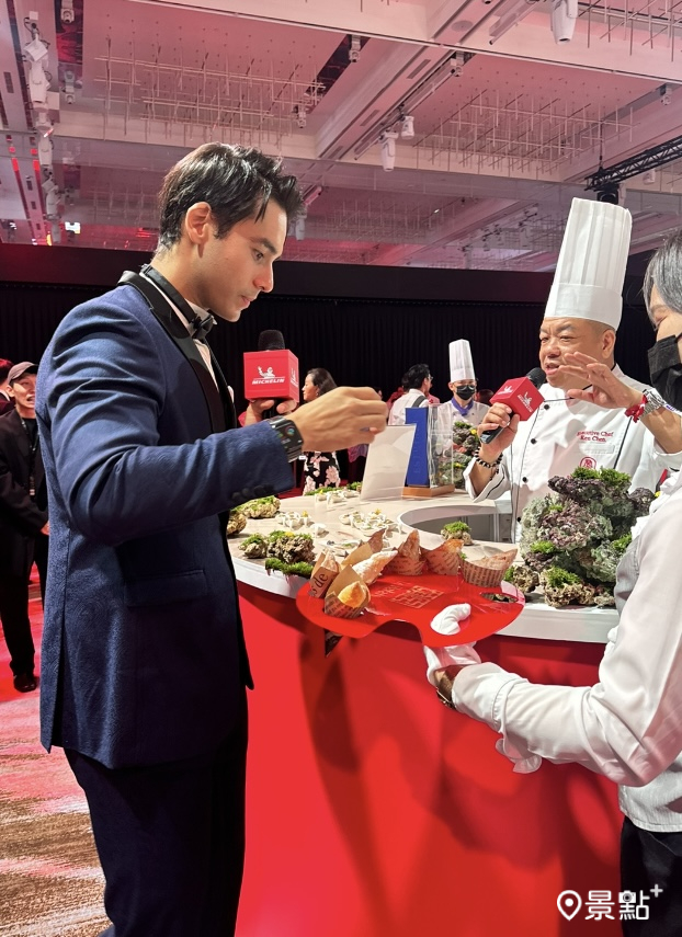 每年的發布會主持人最常見的就是聶雲以及艾立克斯,今年的發布會主持人則為戴凱文(IG:kevintai_dwt),他除了能以流利的中英文切換主持,典禮過程中也曾冒出台語,邀請大家掌聲「催落去」!氣氛掌握輕鬆又不失莊重,會後他在雞尾酒會交流期間也有當面近距離訪問主廚。