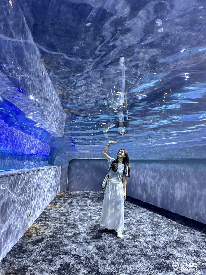 企鵝觀賞區(國內首個企鵝開放式展示缸)有一環水廊道,方便從水下角度欣賞企鵝的泳姿,兒這裡也是拍出驚奇美照的地方,整個人彷彿被海水包圍,相當夢幻!